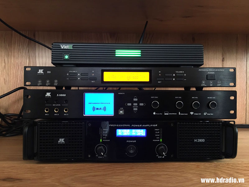 Lắp dàn karaoke cao cấp gia đình anh Tuấn ở Thủ Đức, HCM (Loa Wharfedale ANGLO X12A, Cục công suất JKAudio H2800, Vang số JKaudio X8000, Micro không dây JKAudio B9, Loa Sub Wharfedale SW12, Đầu ViệtK 4K Plus 4TB)