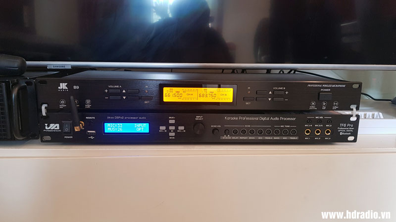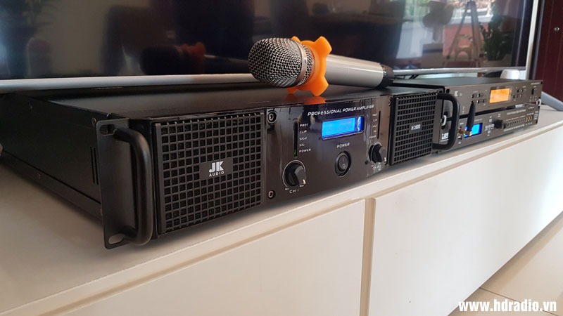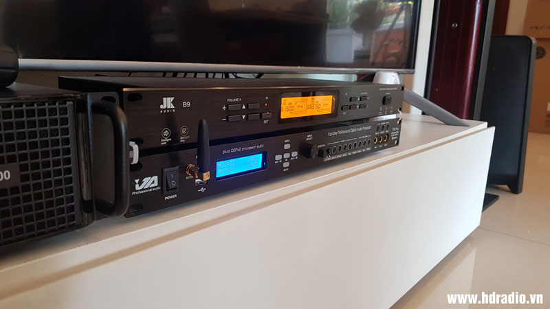 Lắp dàn karaoke chị Hằng ở Long Biên, Hà Nội (Micro không dây JKAudio B9, Loa Wharfedale WH10 NEO, Cục công suất JKAudio H2600, Vang cơ JA TF6 Pro, Loa SUB JBL Pasion 12SP)