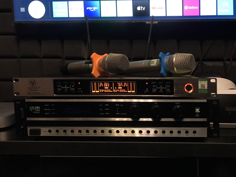 Lắp dàn karaoke chị Thảo ở Quận 2, Hồ Chí Minh (Loa CAVS LF710 Cục đẩy liền vang Kiwi PD8000 Micro không dây VinaKTV S600X Max)