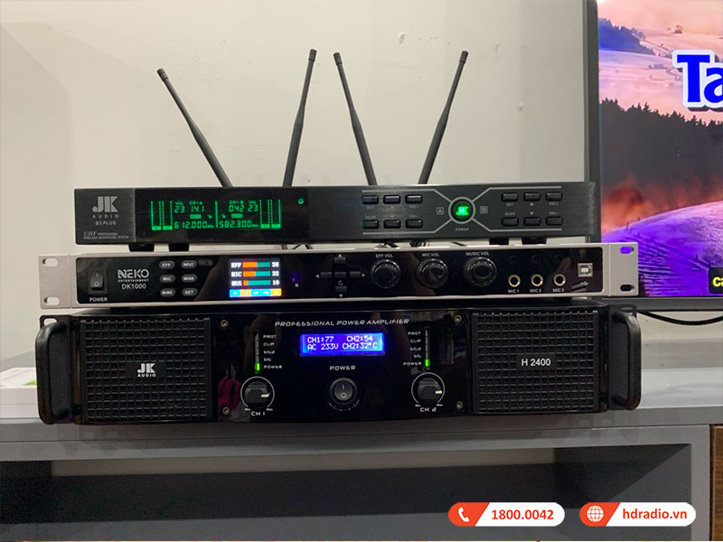 Đây là một trong những bộ dàn karaoke có mức giá cực kỳ phải chăng, phù hợp với nhiều nhu cầu, điều kiện cũng như không gian phòng khác nhau. Được phối ghép, thiết kế từ các sản phẩm chính hãng, cao cấp đến từ những thương hiệu đình đám trên thế giới như JKaudio, Paramax, Neko - Rất phù hợp với không gian phòng khách gia đình đồng thời đáp ứng hoàn hảo nhu cầu ca hát, giải trí tại gia của anh.