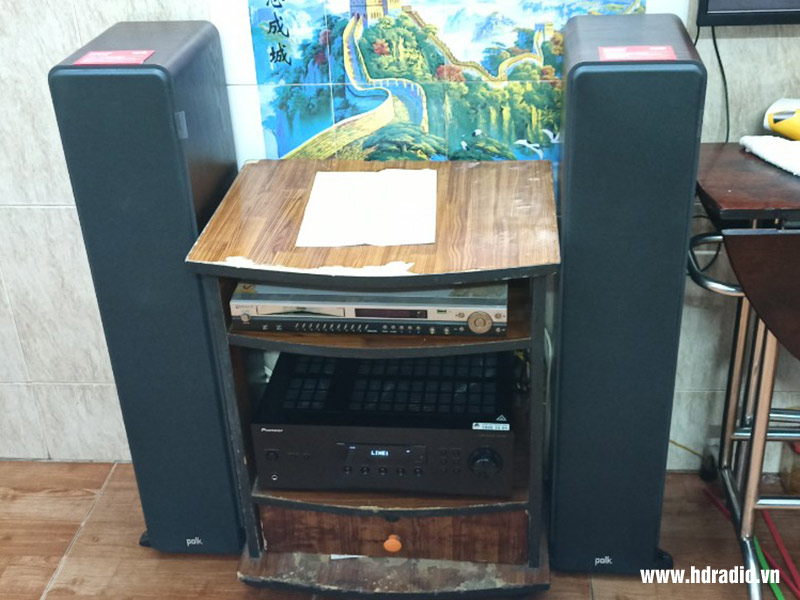 Lắp dàn nghe nhạc chính hãng giá rẻ cho chị Trâm ở Bình Tân, HCM (Loa Polk Audio Signature S50, Amply Pioneer SX-10AE)