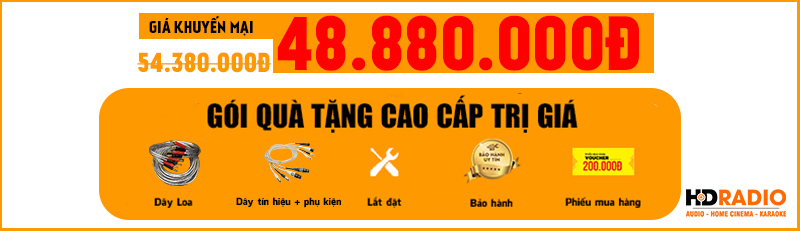 Bộ âm thanh nghe nhạc hát karaoke của Anh Ánh là Dàn Nghe Nhạc và Hát Karaoke HD63 hiện đang có ƯU ĐÃI KHỦNG chỉ có ở HDRadio với giá siêu ưu đãi giảm từ 54.360.000 vnđ xuống còn 48.880.000 vnđ. Ngoài ra để hỗ trợ tối đa khách hàng, HDRadio còn miễn phí cho anh toàn bộ dây giắc kết nối cùng gói công lắp đặt, bảo hành tận nhà với giá trị lên tới gần 3 triệu đồng