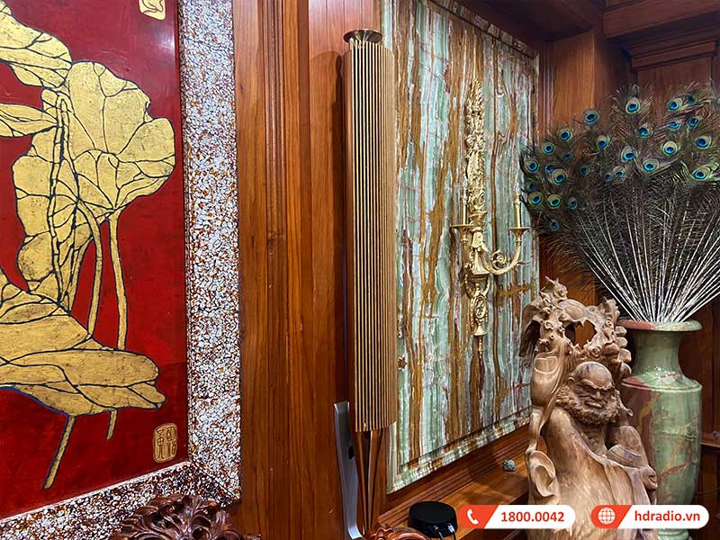 Nổi bật trong hệ thống âm thanh của anh Hùng là sự hiện diện của cặp loa Bluetooth đình đám, Loa đứng nghe nhạc Hi-Res đỉnh cao của hãng Bang&Olufsen - B&O Beolab 18 với nhiều công nghệ âm thanh độc quyền được tích hợp cung cấp âm thanh Hifi vô cùng chất lượng kết hợp với thiết kế ấn tượng từng đạt giải thưởng CES Best of Innovations 2014, cực kỳ hài hòa, phù hợp với không gian phòng, đồng thời mang lại chất lượng âm thanh đỉnh cao, đáp ứng trọn vẹn nhu cầu nghe nhạc của anh Hùng.