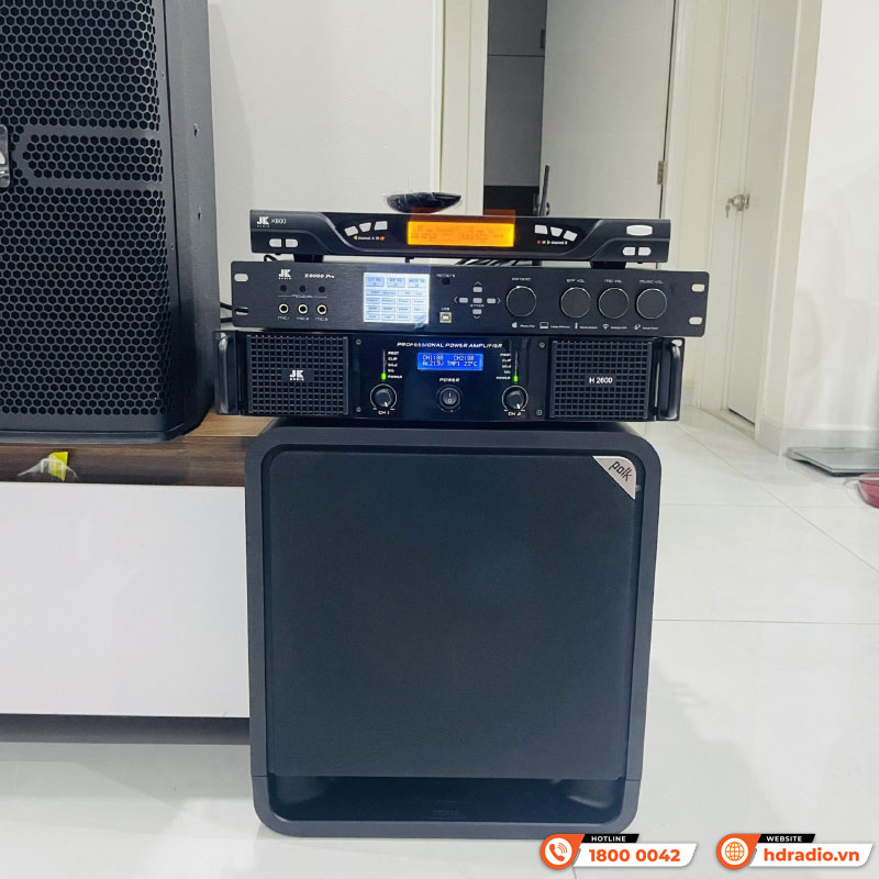 Đánh giá Lắp đặt Dàn karaoke cao cấp HDR83 kết hợp sub Polk Audio HTS12 trị giá gần 67 triệu đồng cho chú Thắng ở Quận 7, Hồ Chí Minh (Wharfedale Anglo X12A, Polk Audio HTS12, JKaudio H2600, JKaudio X9000 Pro, JKaudio K800)