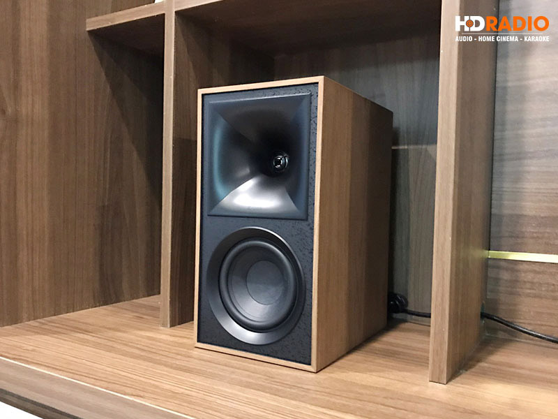 • Loa có thiết kế bookshelf nhỏ gọn với loa màu vân gỗ phù hợp với không gian phòng nhỏ của gia đình anh Tiến