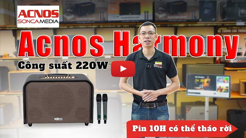 Loa Acnos Harmony là dòng loa karaoke di động cao cấp mới nhất năm 2025 đến từ thương hiệu Soncamedia, được phát triển dựa trên thành công của model Acnos Acoustic 3 đình đám trước đó. Loa vẫn giữ cấu trúc âm thanh ba đường tiếng chất lượng cao cùng công suất mạnh mẽ 220W RMS như ở model cũ nhưng được nâng cấp và cải tiến toàn diện về thiết kế, tính năng lẫn cải tiến người dùng. Cụ thể, ở Acnos Harmony đã được tích hợp thêm quai xách vô cùng tiện lợi, Pin có thể tháo rời, thay thế giúp an toàn hơn khi bay. công nghệ DSP nâng cấp giúp âm thanh hài hòa, trong trẻo, nghe nhạc và hát hay hơn cùng loạt màu sắc thời thượng như Nâu da bò và Đen - phù hợp với nhiều phong cách nội thất và cá tính người dùng hiện đại. Đây là lựa chọn lý tưởng cho những ai yêu thích âm nhạc và đam mê ca hát ngay tại nhà hoặc trong các buổi tiệc, dã ngoại.