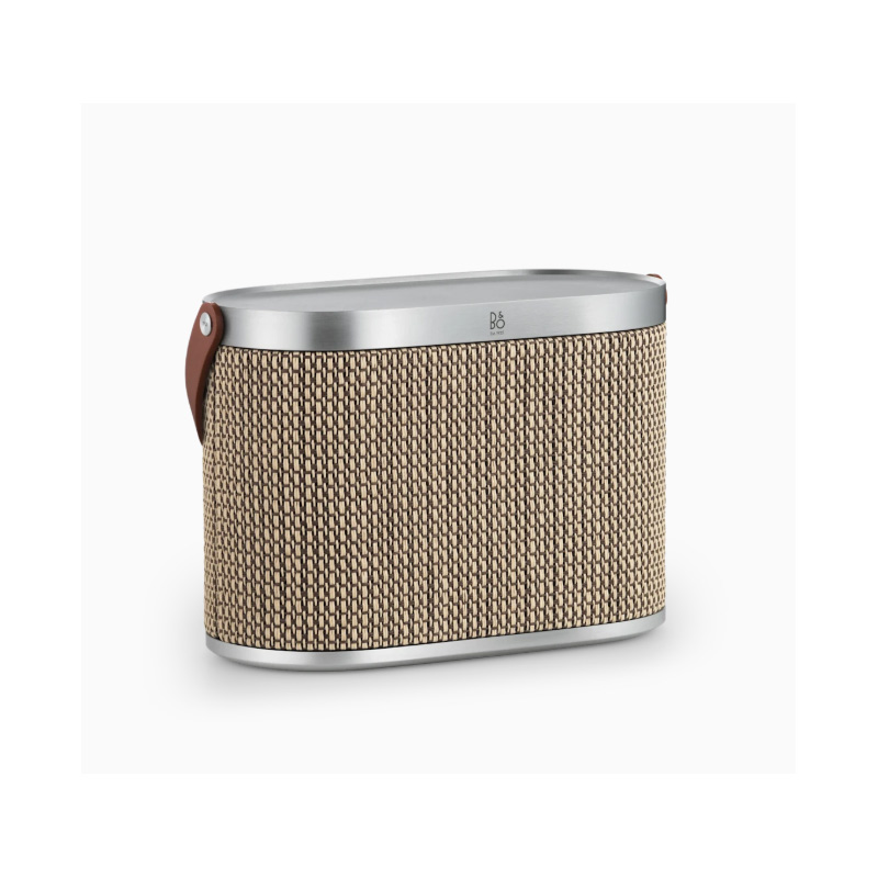 - Loa B&O Beosound A5 Nordic Weave: Khung nhôm tự nhiên với ê căng từ sợi giấy cao cấp dệt và tay cầm bằng gỗ sồi thủ công 100% tại Đan Mạch.