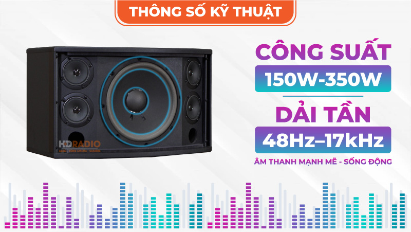• Cấu tạo bao gồm 1 loa bass 25cm và 2 loa treble 7.6cm
