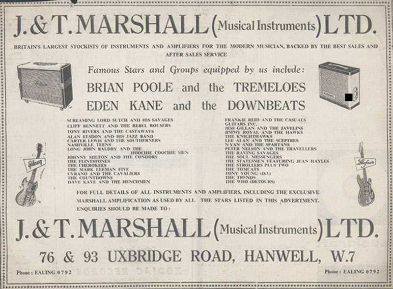 Cửa hàng đầu tiên của hãng Marshall bán nhiều loại nhạc cụ và thu hút nhiều tài năng trẻ mới nổi, chẳng hạn như Pete Townshend, Ritchie Blackmore, John Entwistle và Big Jim Sullivan, những người là bạn của Terry và biết đến cửa hàng âm nhạc thông qua các học trò chơi trống của Jim, chẳng hạn như Keith Moon. Từ đó cửa hàng nhanh chóng nổi tiếng là nơi lui tới của các nhạc sĩ nhạc rock trẻ tuổi.