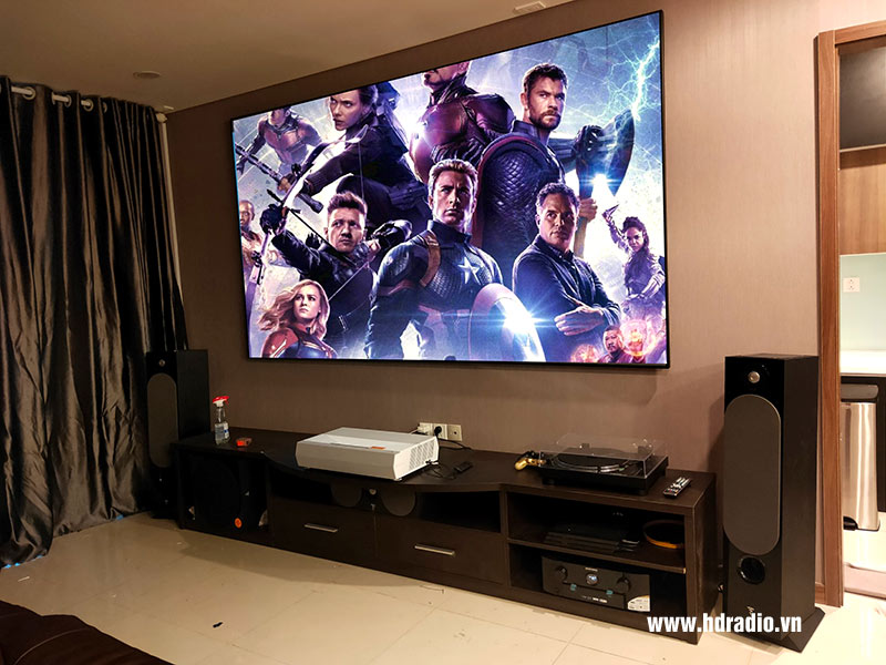 - Hình ảnh thực tế Máy chiếu 4K Siêu Gần Optoma CinemaX P2 tại nhà anh Hải ở Hưng Yên