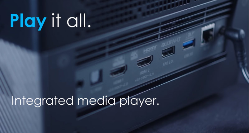 Trải nghiệm phát lại tập tin video 4K HDR tuyệt đẹp với trình phát đa phương tiện tích hợp trên máy chiếu 4k Optoma UHD51A. Chỉ cần chèn một ổ đĩa flash với video hoặc hình ảnh 4K, khởi chạy trình phát phương tiện và chọn tệp của bạn. Phát nhạc cũng được hỗ trợ.