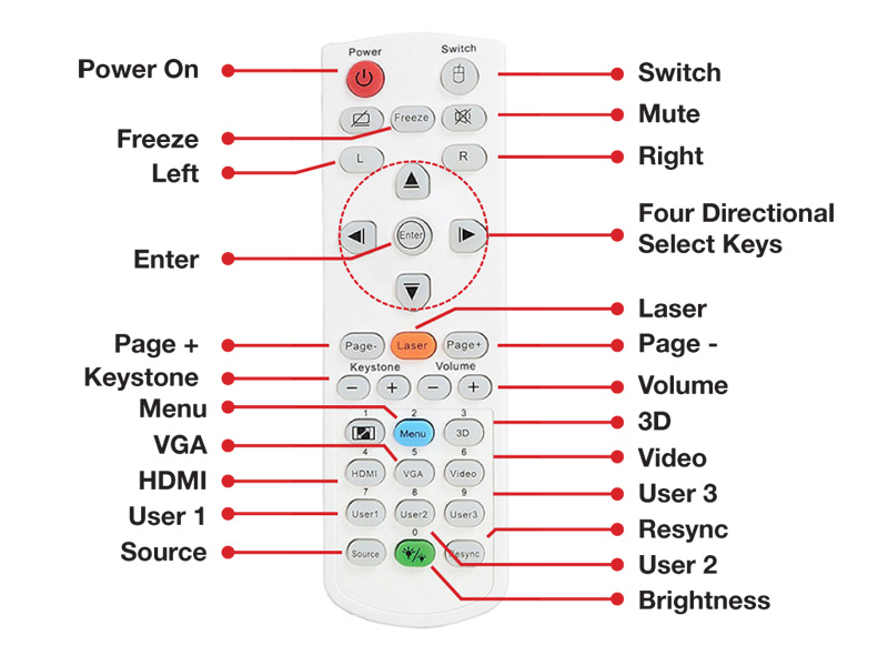 Máy chiếu Optoma EH412 có remote đi kèm giúp bạn điều khiển từ xa tương đối đơn giản
