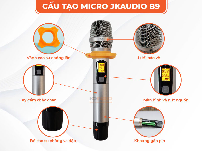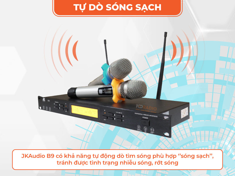 Micro không dây JKAudio B9, Cảm biết gia tốc, Cảm biến tự ngắt, Dò sóng sạch Micro không dây JKAudio B9, Cảm biết gia tốc, Cảm biến tự ngắt, Dò sóng sạch