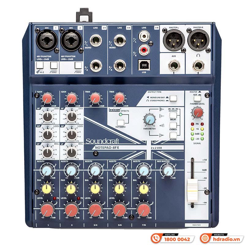 Quý khách hàng chọn bàn mixer chính hãng không thể bỏ qua Bàn Mixer Soundcraft Notepad 8FX chính hãng với khả năng hoàn hảo cùng kiểu dáng đẹp chắc chắn sẽ làm quý khách hài lòng. Để đặt mua vui lòng liên hệ theo số hotline hoặc đăng ký đặt bàn mixer bằng thao tác nhấn vào MUA NGAY, hoặc đối với khách hàng ở gần có thể qua trực tiếp hệ thống các showroom HDRadio tại Hà Nội & Hồ Chí Minh tham quan và mua sắm nhiều thiết bị karaoke cao cấp cho hệ thống âm thanh của mình trở lên chuyên nghiệp hơn.