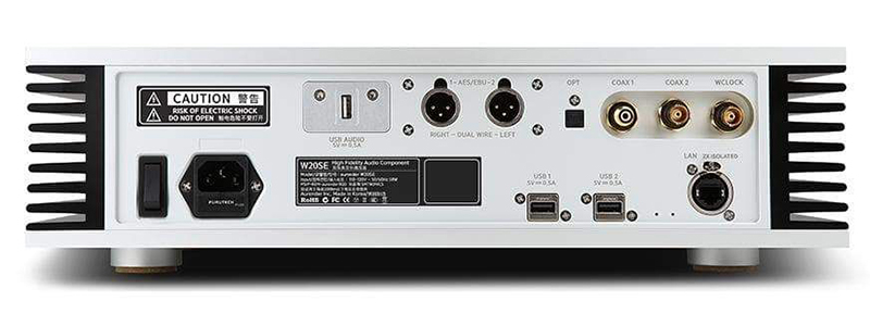 Được thiết kế để phù hợp với các bộ chuyển đổi kỹ thuật số sang tương tự hiệu suất cao nhất, Music server Aurender W20SE được trang bị nhiều đầu ra SPDIF khác nhau (Dual AES / EBU, Coaxial BNC và Optical) và một đầu ra USB Audio Class 2.0 chuyên dụng. Để kết nối mạng và truyền tệp, W20SE đi kèm với một cổng Gigabit Ethernet và hai cổng dữ liệu USB 2.0.