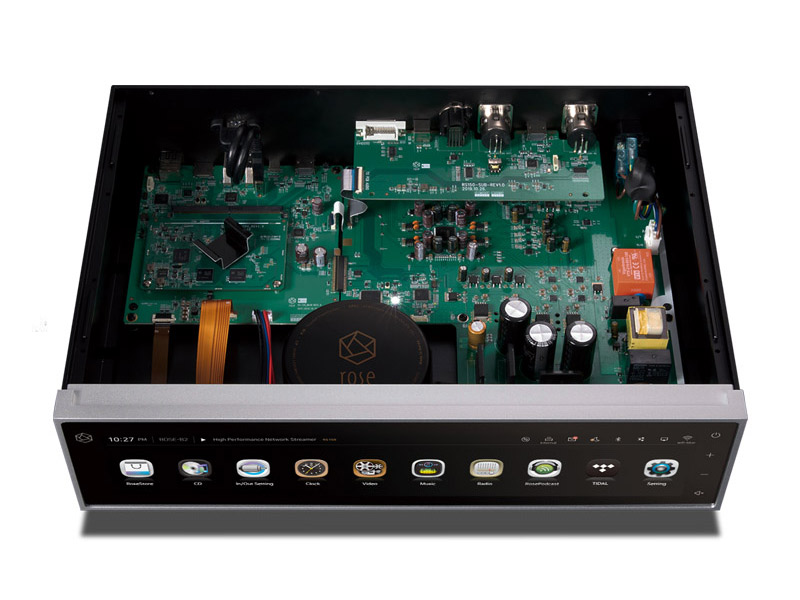 Ngoài được trang bị màn hình màu cảm ứng lớn để tạo điều kiện thuận lợi cho việc điều hướng qua các menu khác nhau của hệ điều hành Android 7.0, bộ khuếch đại Rose RS201E còn được trang bị một chiếc điều khiển từ xa bluetooth (được cung cấp cùng với RS201) cho phép người dùng điều khiển từ xa tất cả các thông số phát lại.